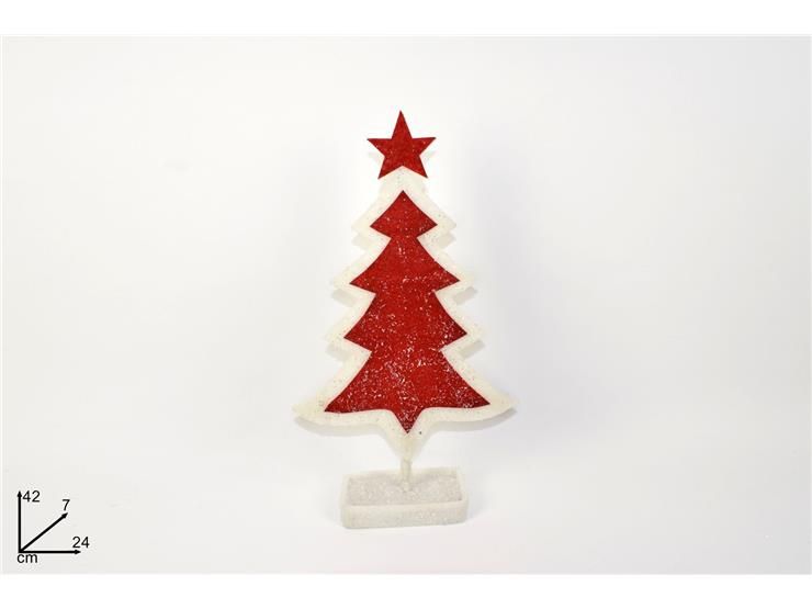 Acquista il nostro grazioso arredo, alberello di Natale in ovatta, colore rosso glitterato.