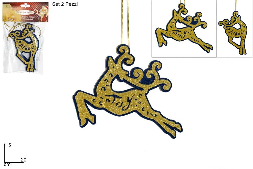Non smettere di decorare e addobbare il tuo albero di Natale e qualsiasi altro spazio possibile! Leggeri ma meravigliosi i nostri appendini in feltro a forma di renna colore blu e oro. In una confezione trovi due appendini diversi, ma sempre dello stesso colore e dello stesso soggetto.