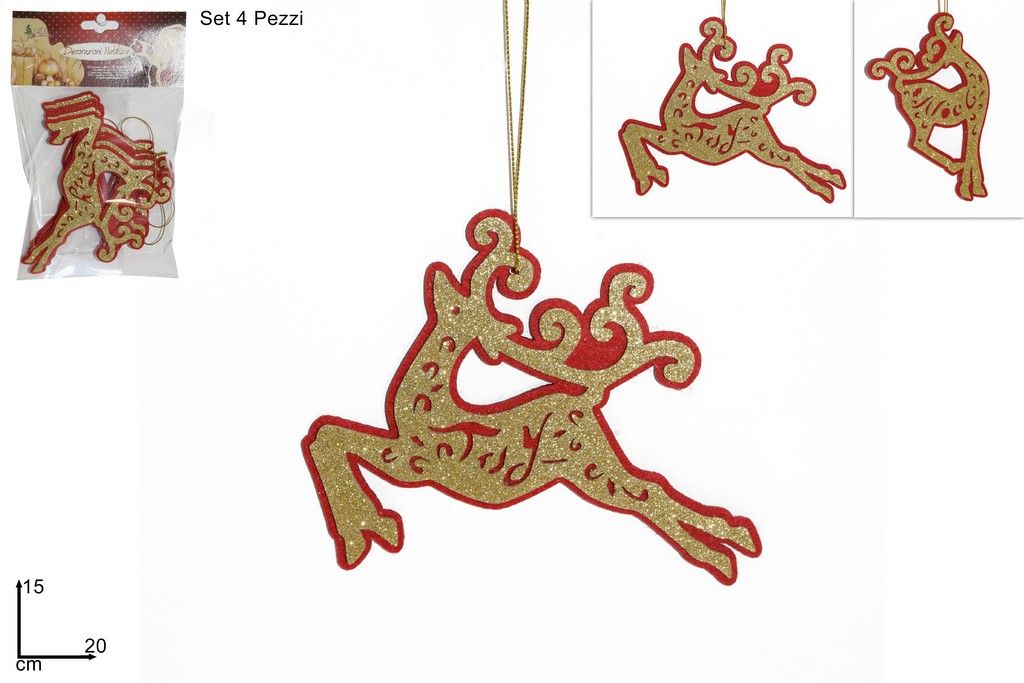 Non smettere di decorare e addobbare il tuo albero di Natale e qualsiasi altro spazio possibile! Leggeri ma meravigliosi i nostri appendini in feltro a forma di renna colore oro e rosso. In una confezione trovi due appendini diversi, ma sempre dello stesso colore e dello stesso soggetto.