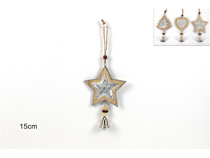 Per avere un pendente particolare per il tuo albero scegli il nostro appendino in legno a forma di stella color argento e dorato.