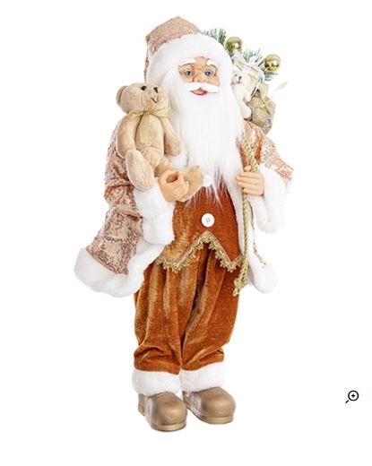 Questo Babbo Natale è ricchissimo di dettagli splendidamente rifiniti: cappello, scarpe, ecopelliccia, confezioni regalo. Che sia in vetrina o nella messa in scena della tua zona centrale, sarà inevitabilmente notato, dalla sua statura imponente (60 cm) e dal suo sorriso espressivo. Ovunque lo installi, attirerà la complicità dei tuoi clienti, giovani e meno giovani.