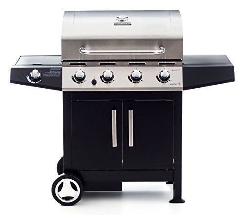 Il coperchio e la plancia sono realizzati in acciaio inossidabile. Ha l'indicatore di temperatura, alloggio bombola coperto e una pratica dispensa con ante.