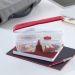 Composto da due pratici contenitori da 0,75 lt ed uno specifico scomparto per posate e tovaglioli.