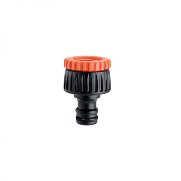 Claber presa multifiletto di collegamento a tutti i tipi di rubinetto. Con funzionalità standard e funzionalità aggancio/sgancio rapido, la presa con aeratore consente di collegare con un semplice click i tubi per l’irrigazione ai più diffusi rubinetti con miscelatore, comunemente usati nelle cucine, nelle lavanderie e nei bagni.