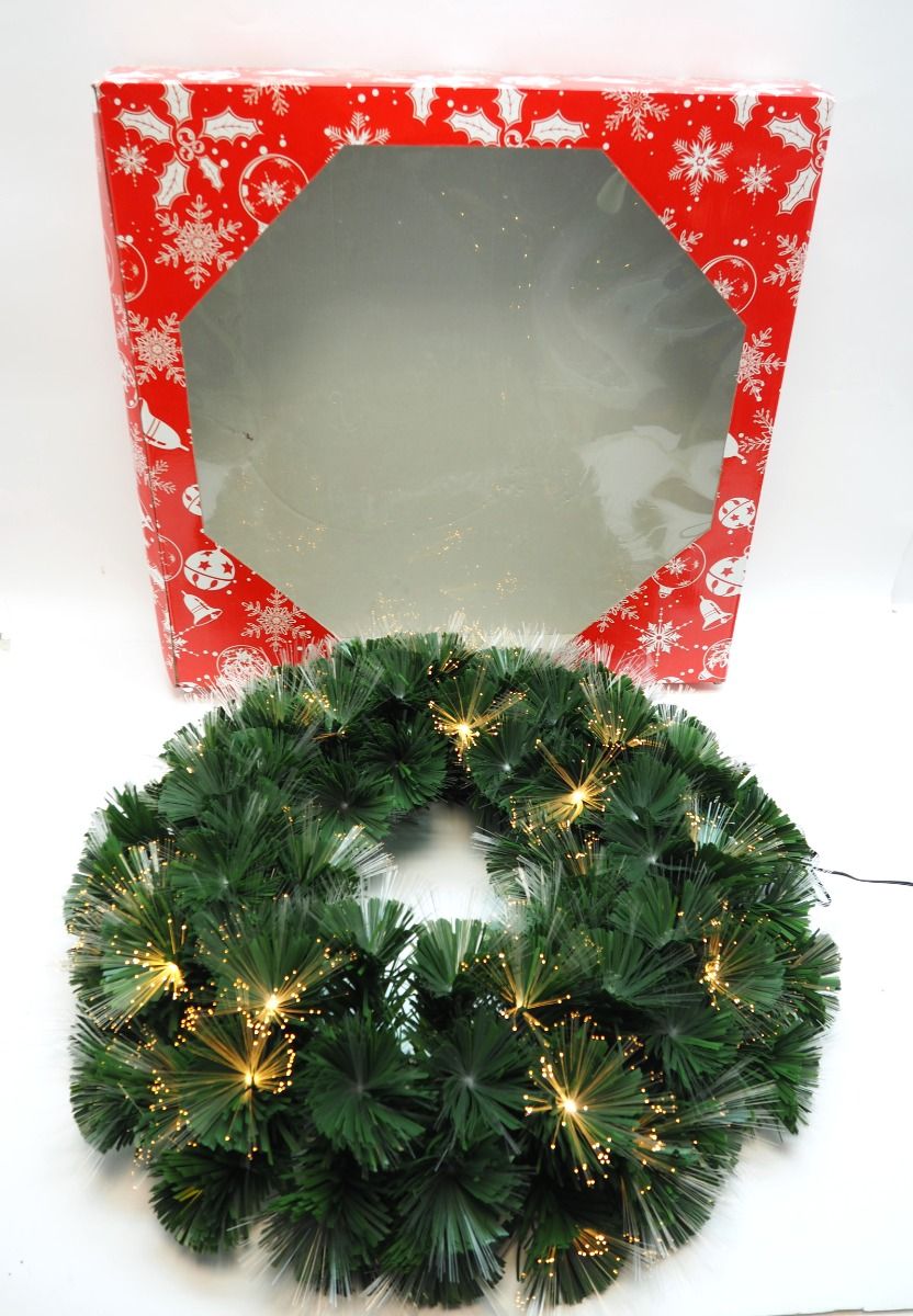 Materiale: plastico resistenteDimensione: 50 cmColore corona: verdeLuci: bianco.