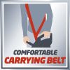 Il soffiatore/aspiratore elettrico per foglie GC-EL 2600 E è un potente apparecchio di comprovata affidabilità per lavori di pulizia in terreni e giardini. Il passaggio tra funzione di aspirazione e di soffiaggio si effettua senza attrezzi,consentendo di adattare rapidamente l'apparecchio all'applicazione del caso. La regolazione elettronica del numero di giri consente di dosare con precisione l'aria aspirata o soffiata. Le due grandi ruote assicurano comfort durante il lavoro e non affaticano la schiena,sia su viottoli che su superfici erbose e terreni accidentali. Il grande tubo rigido di aspirazione composto da due elementi elimina anche oggetti relativamente grandi, quali frutti o pigne, senza intasarsi e li convoglia nel sacco di raccolta da circa 45 litri. Il meccanismo trituratore integrato trita materiale morbido, quale fogliame ed erba tagliata, riducendone il volume a 1/10 di quello originale. La cinghia di trasporto regolabile consente di trasportare l'apparecchio senza sforzo e senza affaticare la schiena anche su terreni più impervi L’impugnatura supplementare regolabile aumenta il grado di ergonomia dell’apparecchio e la pratica clip antistrappo porta cavo consente di guidare l’aspiratore elettrico senza timore di inciampare o danneggiare il cavo.