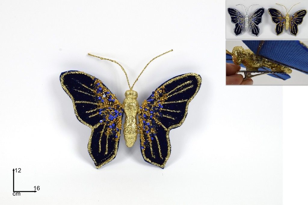 Vuoi far volare l'allegria natalizia per la tua casa? Scegli la nostra meravigliosa "farfalla" blu con pinzetta. Caratterizzata da glitter colore oro, sembra quasi reale!