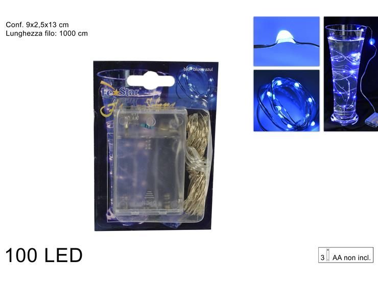 Per illuminare la tua casa, il tuo albero e altro ancora puoi comprare il nostro set di 100 luci di colore blu. In questo modo porterai l'atmosfera del Natale a casa tua.