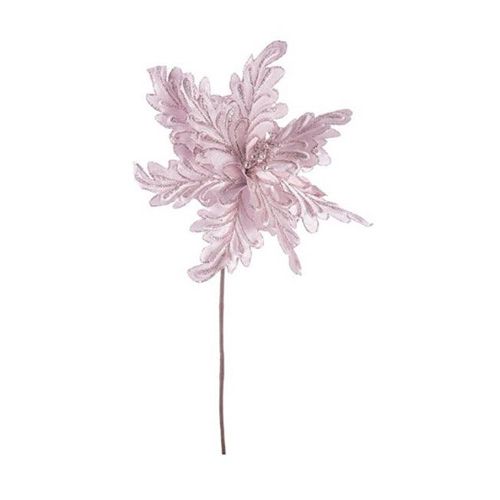 Fiore artificiale per decorazione natalizia con glitter. Realizzato poliestere effetto velluto, glitter, fil di ferro. Dimensioni diametro 32 cm, altezza 50 cm.