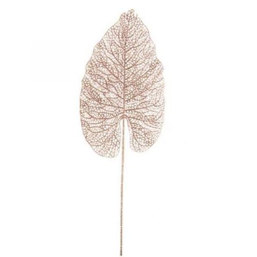 Decorazione natalizia Foglia a forma di cuore color oro con glitter. Realizzata in plastica, fil di ferro.