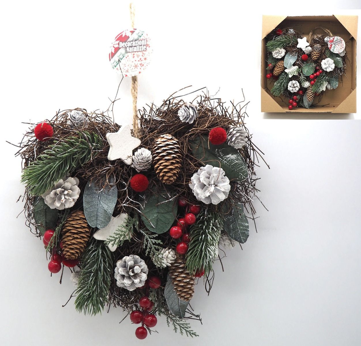 Corona avvento Natale bacche pigne verdi 32 cm.