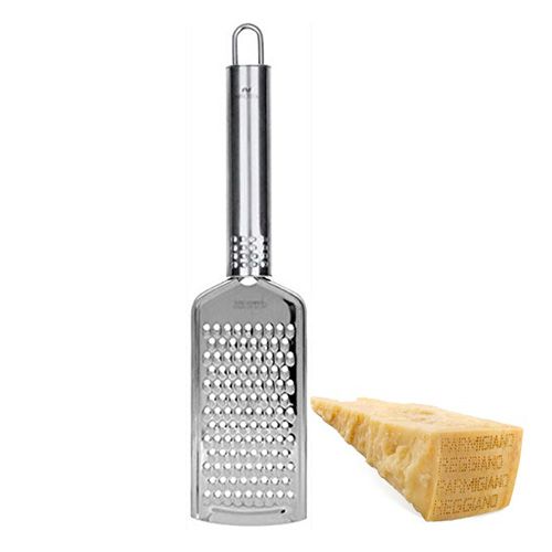 Grattugia manuale da tavola 22 cm in acciaio inox per formaggi. Utensile leggero e maneggevole, con gancio per poter essere appeso.