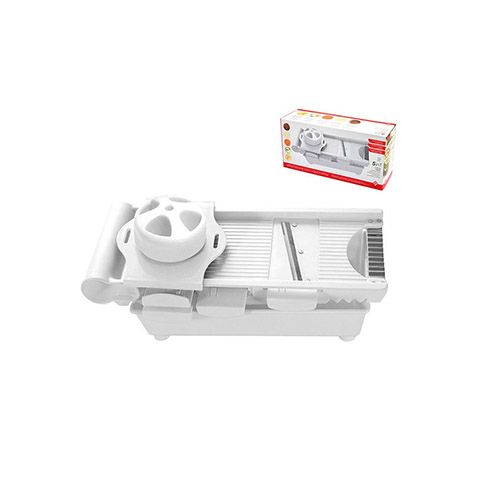 Cinque funzioni in uno per l'affettatutto cinque usi di Home. Realizzato in plastica di colore bianco, è di forma rettangolare ed ha un pratico raccoglitore intrgrato. Per tagliare e affettare tutte le vostre pietanze!