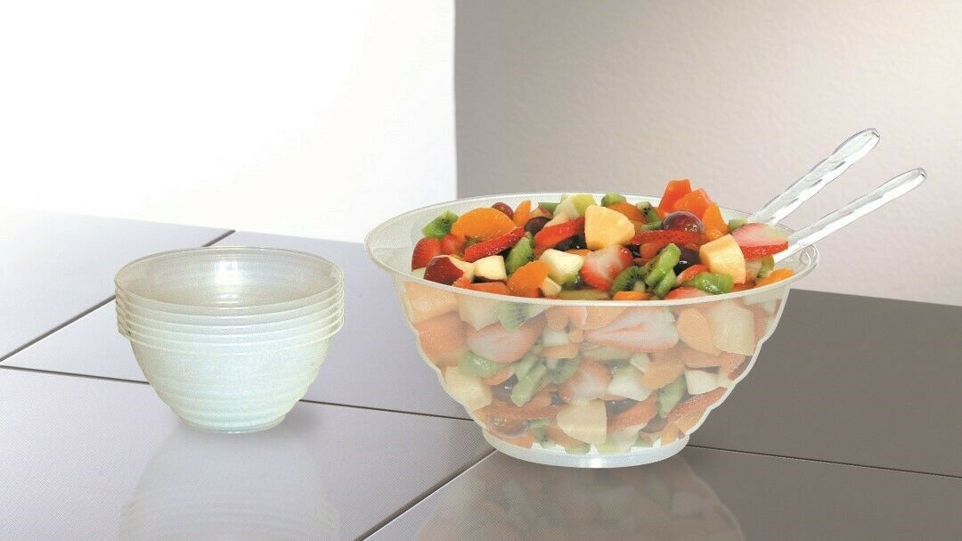 Arriva la bella stagione e la frutta fresca sarebbe un ottimo pranzo, un'ottima merenda e un'ottima cena...potresti portare con te la tua insalata di macedonia nel nostro contenitore plastica per alimenti adatto per macedonia! Il nostro set è formato da 9 pezzi tra cui 6 coppette e due posate; ideale anche per finire i vostri pranzi o cene tra amici...grazie al nostro set avrai le comode 6 coppette da distribuire a tavola! Affrettati a comprare online il set macedonia!