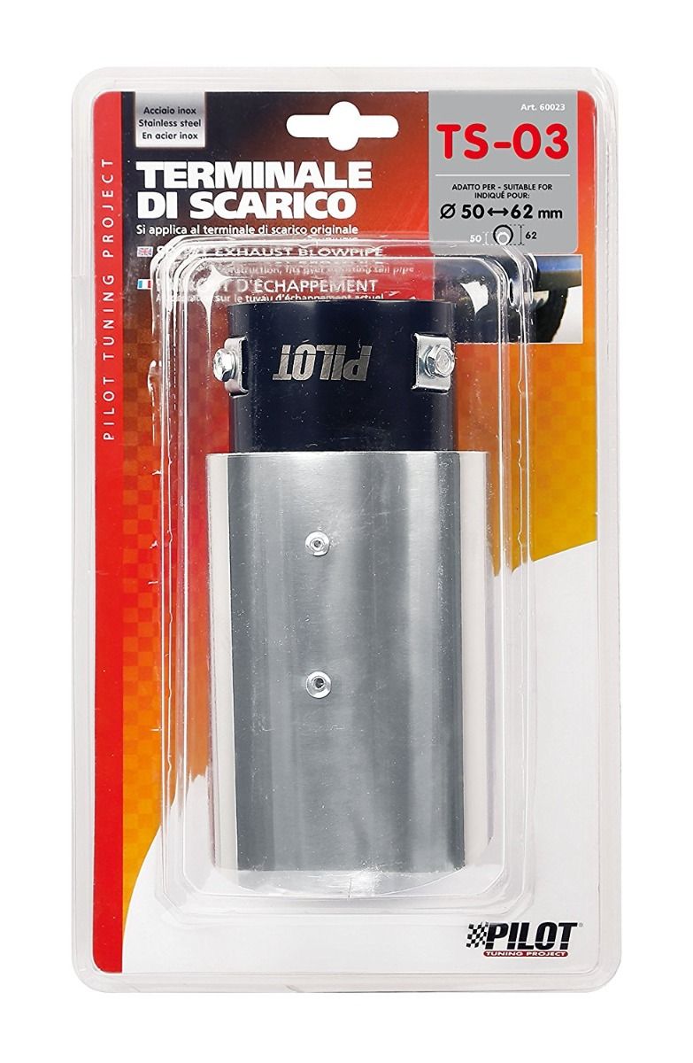 CODINO TERMINALE MARMITTA TURBO TS-03 ACCIAIO INOX DIAM.50-62MM