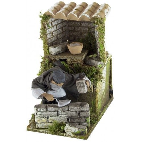 Pastore Muratore in Movimento ambientazione per presepe 14x9 cm