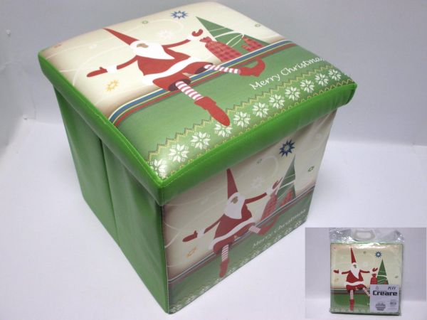 Contenitore multiuso a tema natalizio realizzato con resistente e stabile struttura in mdf, con rivestimento decorativo in ecopelle e coperchio sedile imbottito. Complemento d’arredo versatile, elegante e ben rifinito, alleato perfetto per l’ordine all’interno della vostra casa. Tre prodotti in uno: comodo sgabello su cui sedersi, praticissimo poggiapiedi e capiente quanto discreto contenitore.