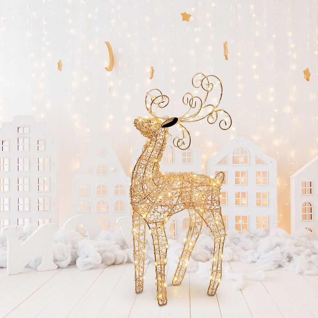 Renna natalizia tridimensionale luminosa filo di rame con micro led luce calda H 47 cm 100 micro led