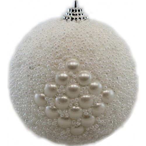 Set da 6 Sfere Natalizie Bianche con perle Palline Decorate 8 cm