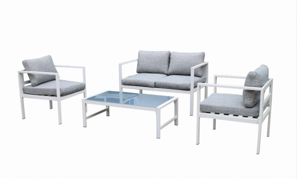 Cuscini in poliestere. Struttura in alluminio resistente alle intemperie.
