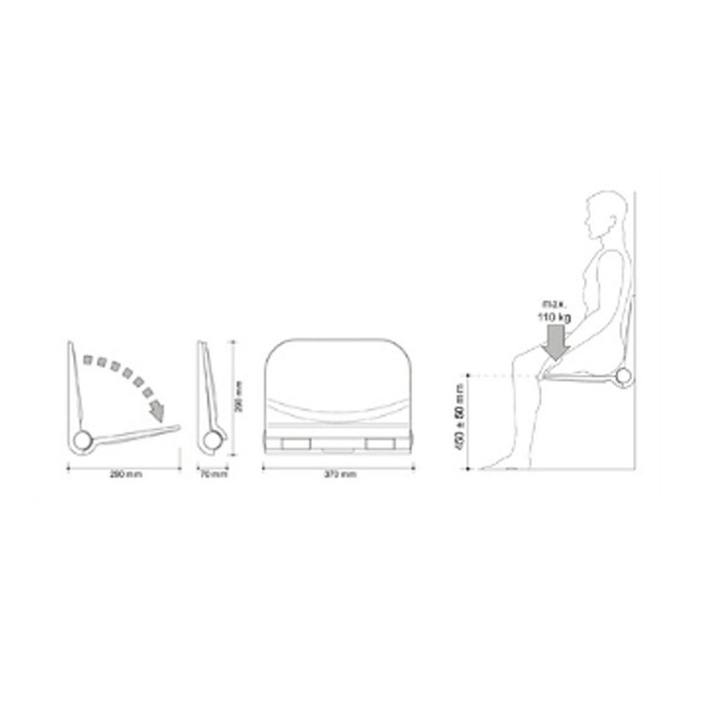 Sedile doccia a ribalta in polipropilene, con trattamento anti batterico.