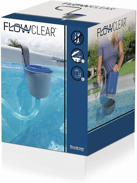 Bestway Skimmer Filtro Pulitore per Piscine. Lo skimmer è un modo molto efficace per eliminare i detriti dalla piscina fuori terra. Lo skimmer di superficie si aggancia semplicemente alla parete interna della piscina, vicino all'ingresso di aspirazione. Attaccalo alla tua pompa del filtro (adatta alla pompa del filtro con una portata di 2.006 L / h e oltre) e osserva come inizia a raccogliere automaticamente i detriti. Quando lo skimmer è pieno, può essere svuotato per essere riutilizzato. La staffa di montaggio regolabile consente di livellare la superficie dell'acqua. Poich? lo skimmer è realizzato in plastica resistente alla corrosione, è facile da pulire e mantenere. Consigliato per tutte le piscine fuori terra ad eccezione della piscina con pareti in acciaio.