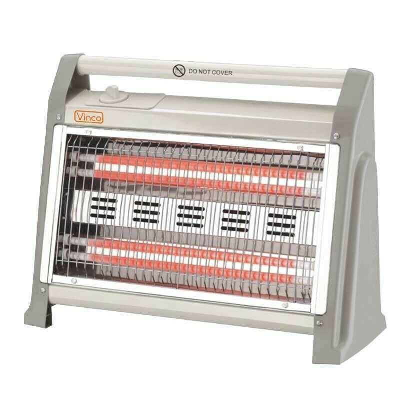 Vinco 70157. Tipo: Riscaldatore di ambienti elettrico al quarzo, Tipologia elemento riscaldante: Vetro di quarzo. Adatto per: Interno, Opzioni di posizionamento: Pavimento, Colore del prodotto: Grigio, Bianco. Potenza termica: 1600 W, Potenza termica (min): 800 W. Tensione di ingresso AC: 230 V, Frequenza di ingresso AC: 50 Hz. Larghezza: 450 mm, Profondità: 160 mm, Altezza: 340 mm