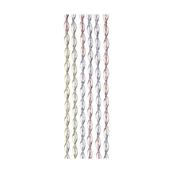 Tenda in PVC morbido e atossico ad effetto “elica”. Supporto in PVC rigido. Grazie al materiale in cui è realizzata, la tenda Storm non produce alcun rumore di urto o fruscio. Il delicato effetto colore è creato dal filo al suo interno. Ideale per interno e per esterno. 140x240 cm (126 fili).