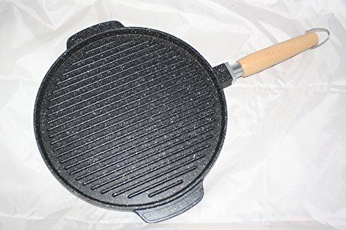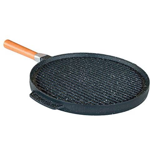 Vulcania Grill 28 cm crepiera e piastra tondo con manico in legno rimovibile in pietra lavica
